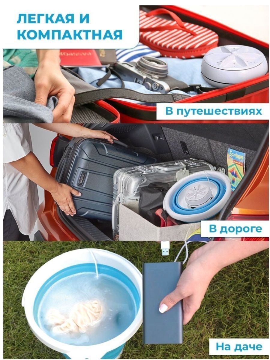 Складная стиральная машинка - идеальное решение для тех, кто ищет компактное и удобное решение для стирки белья. Портативная стиральная машинка идеальна для дороги и путешествий или для использования на кемпинге.